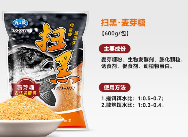 龙王恨扫黑麦芽糖饵料参数、特点、使用方法: